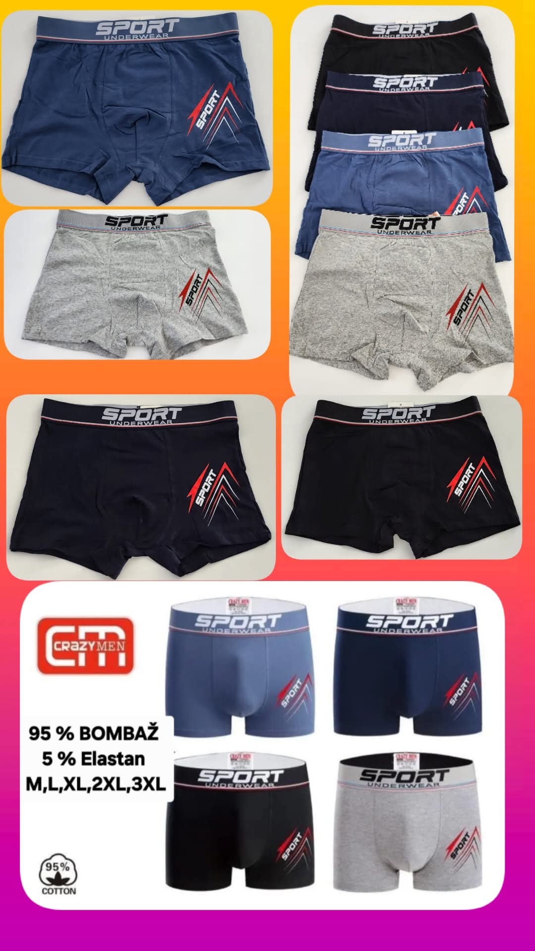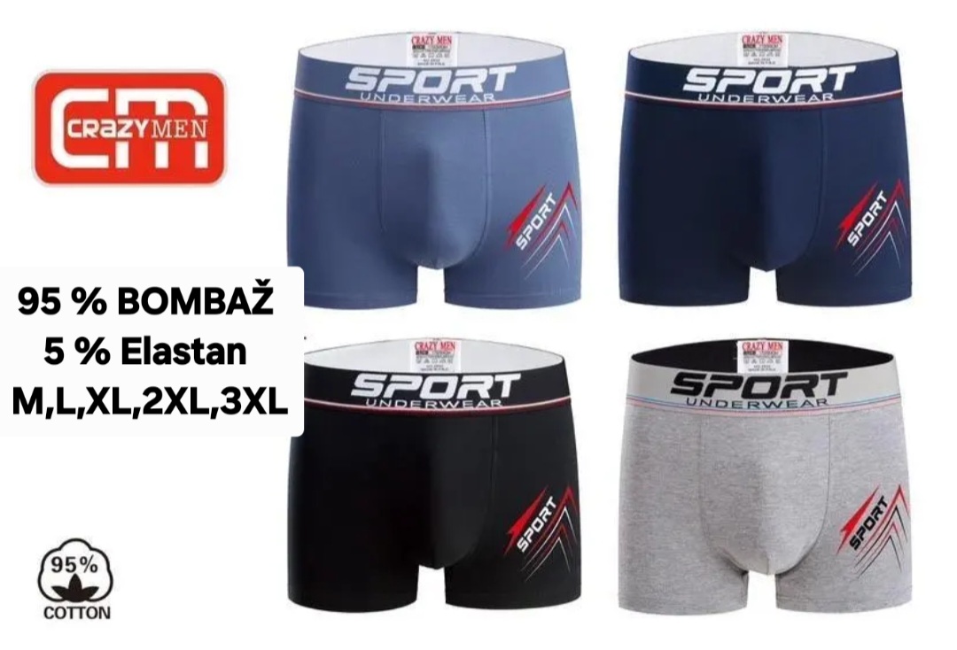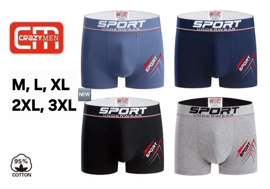 BOKSARICE UNDERWEAR SPORT, 95 % bombaž, 5 % elastan, M, L, XL, 3 XL, normalne velikosti.