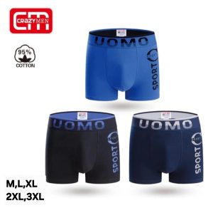 Uomo je priznana blagovna znamka, ki ponuja kvalitetne moške boksarice po zelo ugodni ceni. Odlična sestava boksaric Uomo iz kar 95% prvovrstnega bombaža in 5% elastana naredijo boksarice koži prijazne in udobne za nošenje.