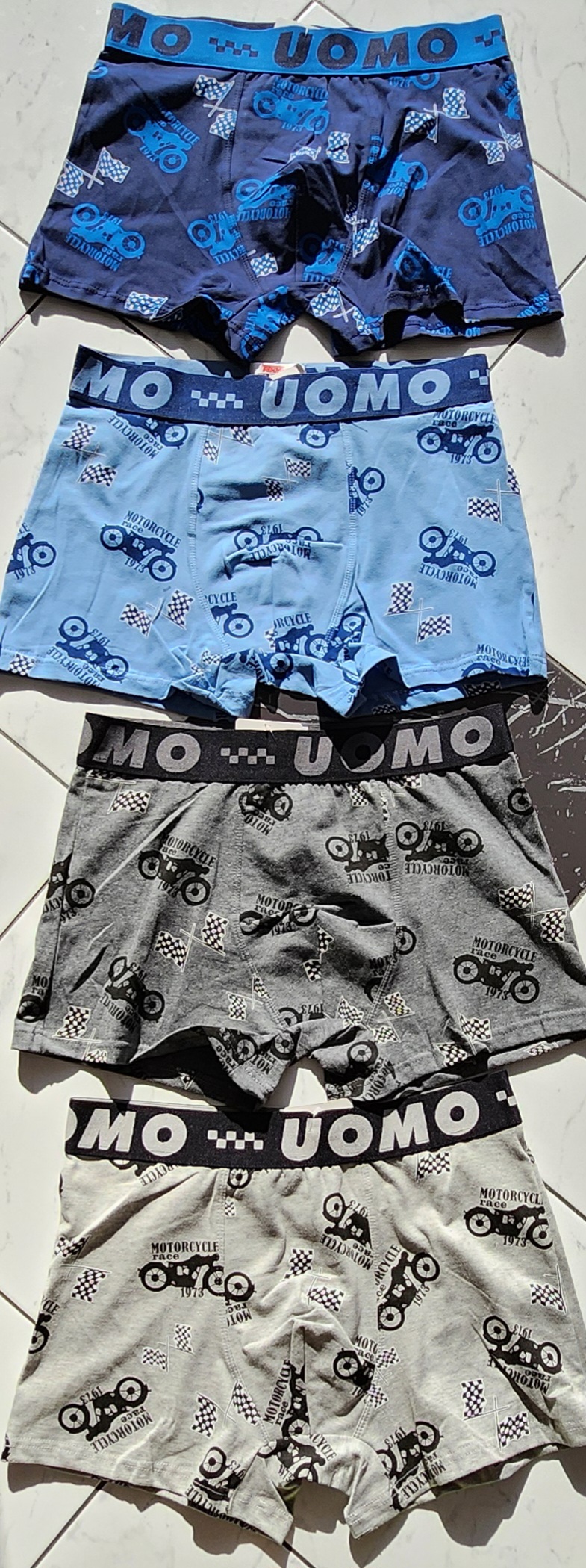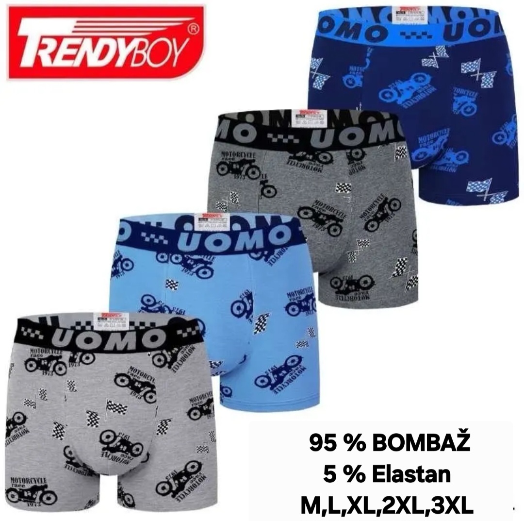 Uomo je priznana blagovna znamka, ki ponuja kvalitetne moške boksarice po zelo ugodni ceni. Odlična sestava moških boksaric Uomo iz kar 95% prvovrstnega bombaža in 5% elastana naredijo boksarice koži prijazne in udobne za nošenje.