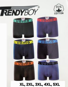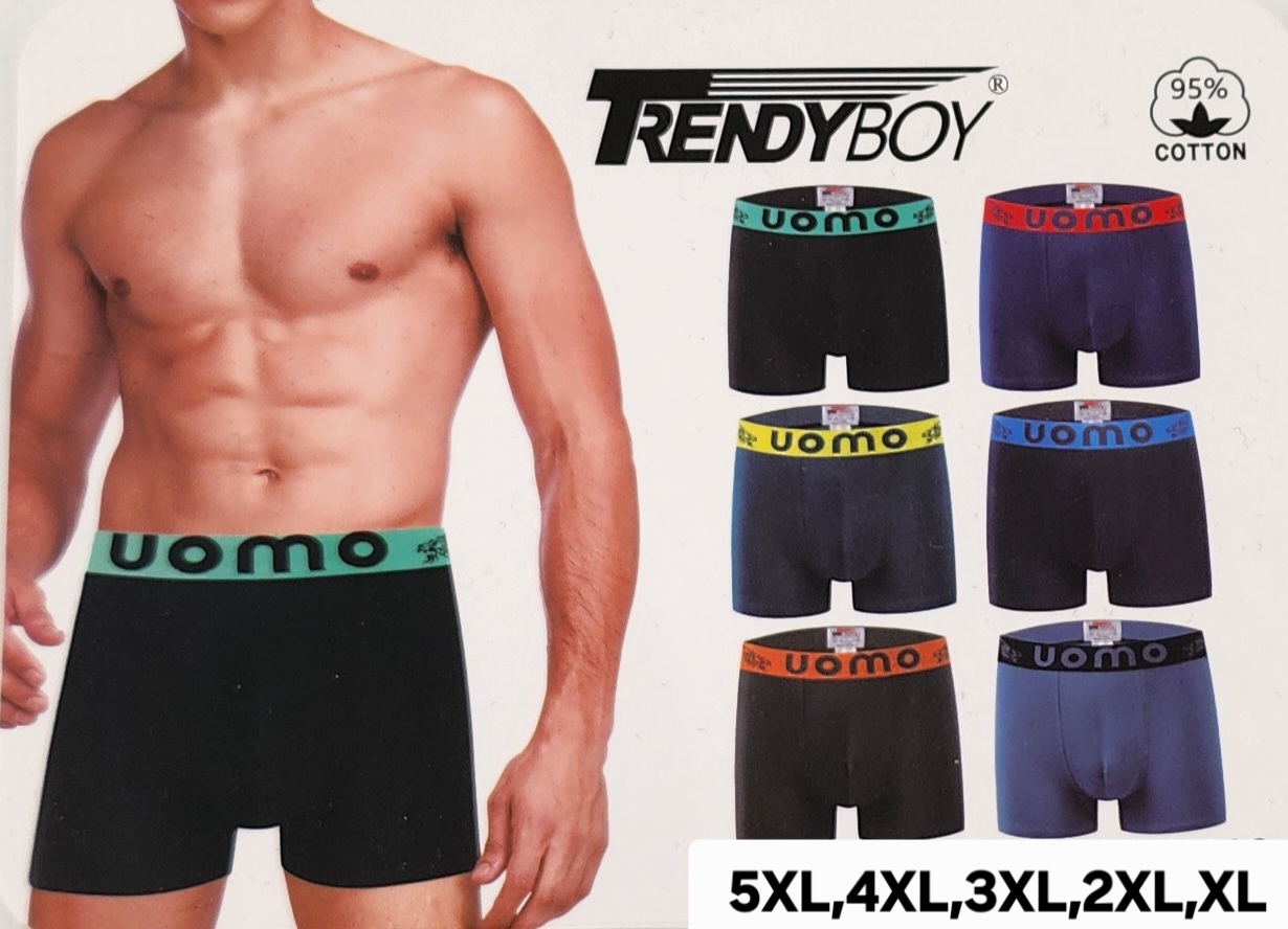 Uomo je priznana blagovna znamka, ki ponuja kvalitetne moške boksarice po zelo ugodni ceni. Odlična sestava moških boksaric Uomo iz kar 95% prvovrstnega bombaža in 5% elastana naredijo boksarice koži prijazne in udobne za nošenje. Sestava: 95% bombaž, 5% elastan. Višina elastike: 4 cm.