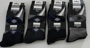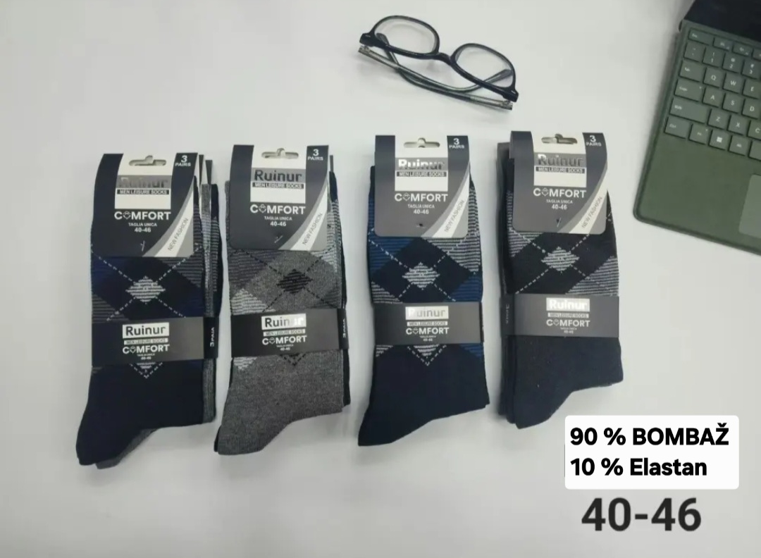 NOGAVICE, 90 % Bombaž, 10 % Elastan, Uni 40 – 46 noga, paket 3 pari ( sive, modre, črne, naključne barve ), cena 4 eur /3 pari nogavic.