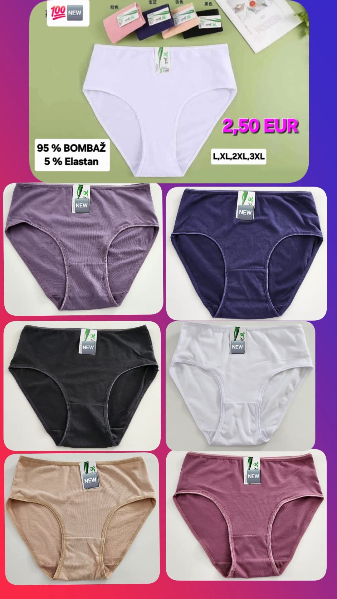 Bodi prvi ocenjevalec “SPODNJICE, L, XL, 2XL, 3XL, 4 XL, 95 % Bombaž, 5 % Elastan, normalne velikosti, raztegljive.” Prekliči odgovor
