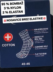 NOGAVICE, 85 % Bombaž, 5 % elastan, 10 % Poliester, Uni 40 – 46 noga, paket 3 pari, cena 4 eur /3 pari nogavic.