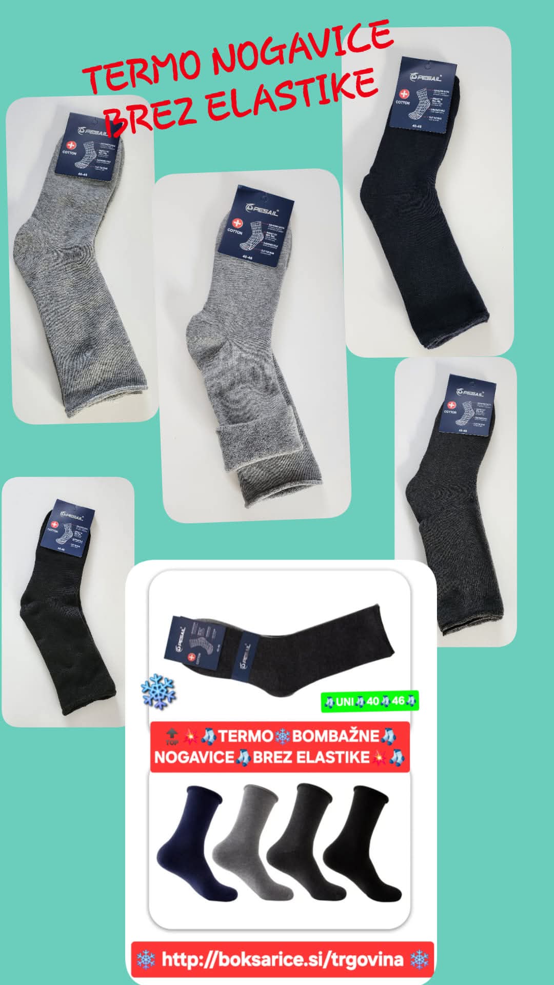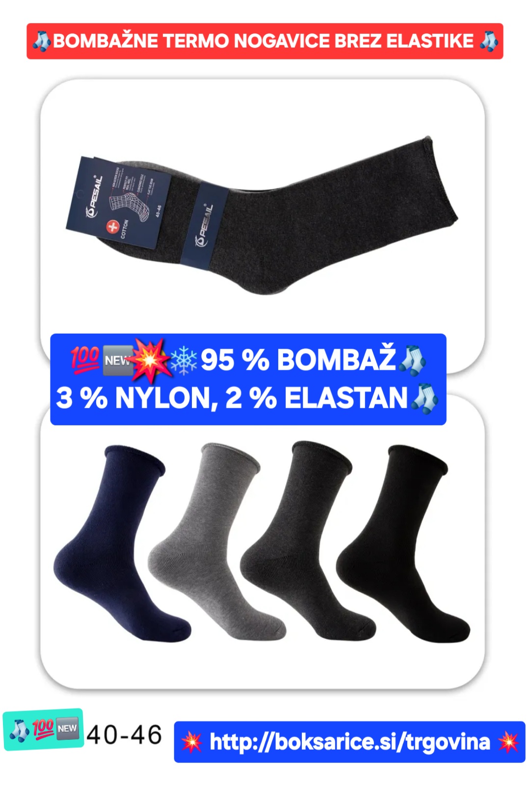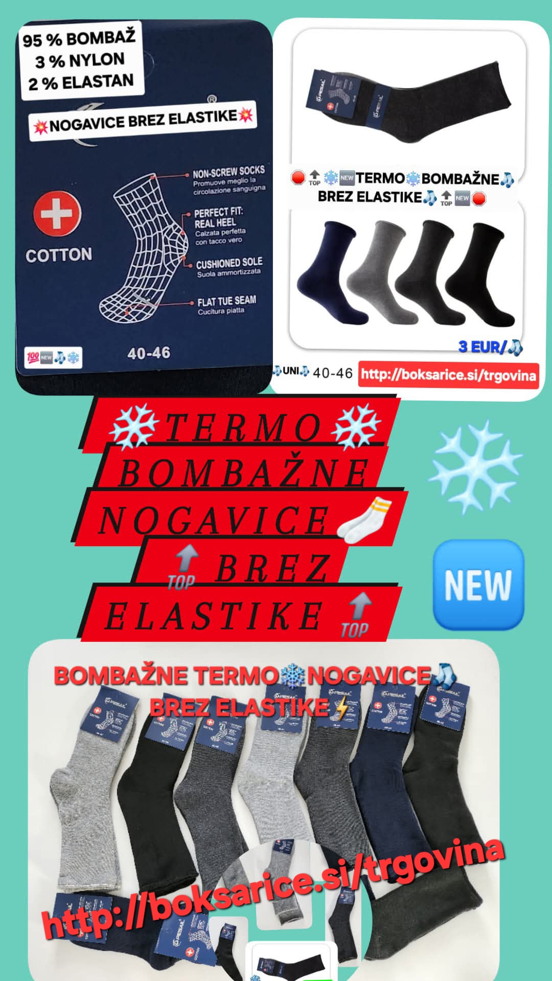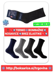 Bodi prvi ocenjevalec “TERMO BOMBAŽNE NOGAVICE BREZ ELASTIKE, UNI, 95 % Bombaž, 3 % Nylon, 2 % Elastan.” Prekliči odgovor