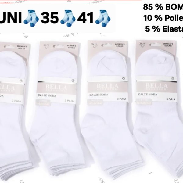 NOGAVICE, 85 % Bombaž, 5 % elastan, 10 % Poliester, Uni 40 – 46 noga, paket 3 pari, cena 4 eur /3 pari nogavic.