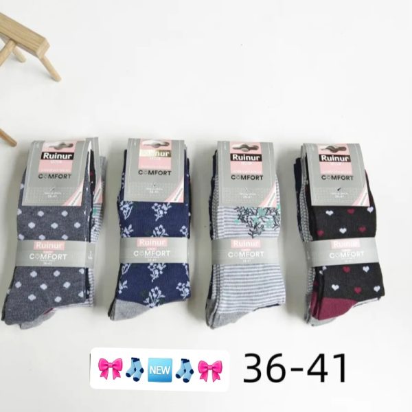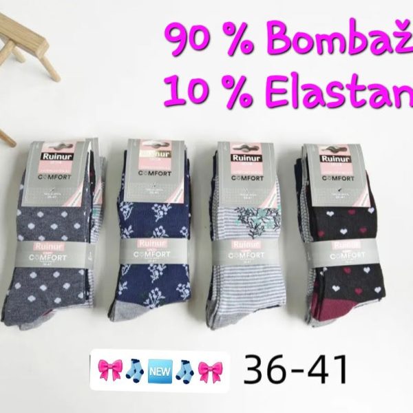 NOGAVICE, 85 % Bombaž, 5 % elastan, 10 % Poliester, Uni 40 – 46 noga, paket 3 pari – naključne barve, cena 4 eur /3 pari nogavic.